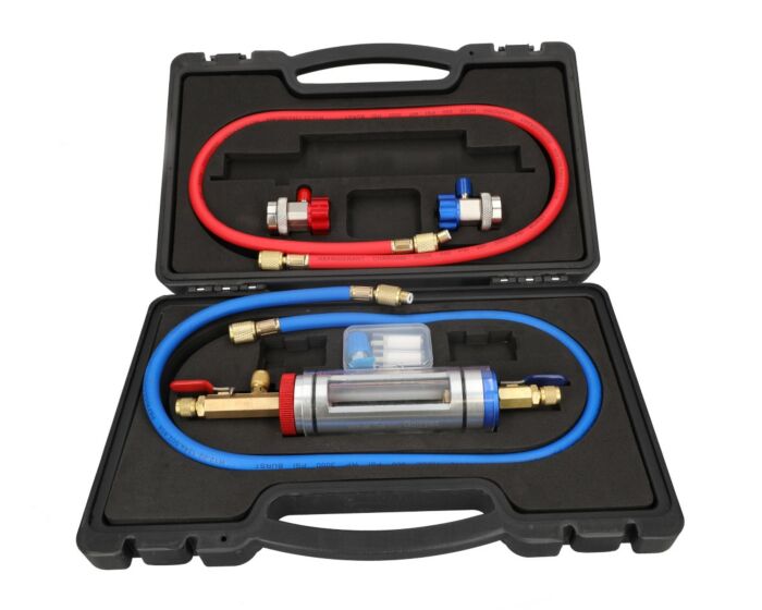 R134a air conditioning filter kit on erikoistyökalu, jonka avulla voidaan analysoida ilmastointijärjestelmän kylmäaineen ja öljyn puhtautta. Sarja mahdollistaa järjestelmästä tulevan kylmäaine–öljyseoksen tarkastelun läpinäkyvän tarkastussylinterin avulla.