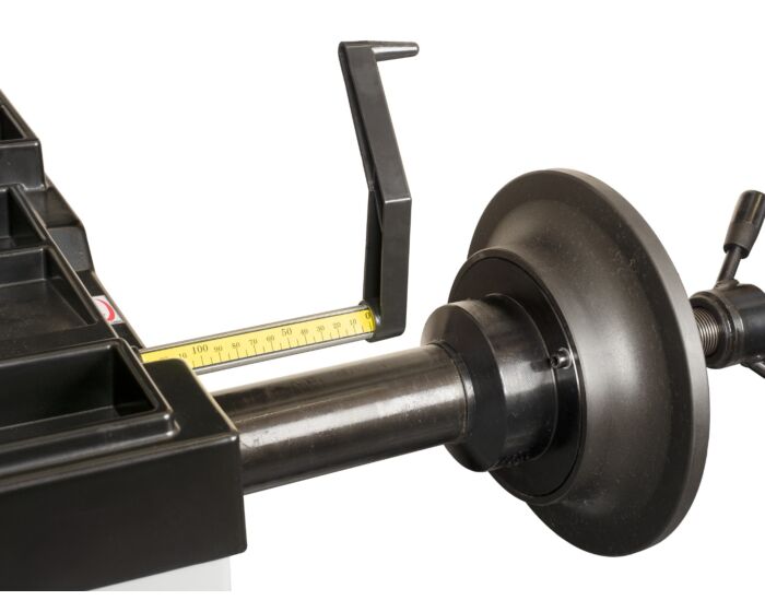 Mukana toimitettava kuorma-auton keskitysadapteri mahdollistaa suurten pyörien nopean ja tarkan asennuksen koneeseen.