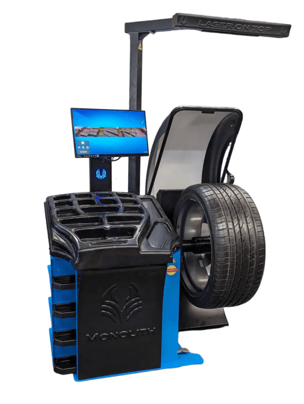 MONOLITH GEO 3D on huipputason tasapainotuskone, joka yhdistää perinteisen pyörän tasapainotuksen innovatiiviseen renkaan säteittäisen heiton (radial run-out) ja kulutuspinnan syvyyden mittaukseen.